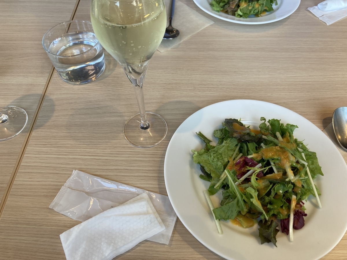 まずは野菜サラダです。ドレッシングは野菜のすりおろしが入っており、ヘルシーながらも満足感の高い一品でした。