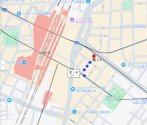 24/7 cafe apartmentは池袋駅近くのビル内に入っており、アクセスはこのようになっています。